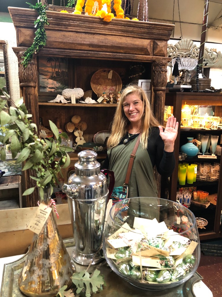 Our ‘dealer spotlight’ for this month is Christine, #66! Nine years ago, while she was working on her teaching credential at Chapman, she would shop in the vintage shops in Old Town Orange – it was those shopping adventure that led to wanting to start her own small business. She loves and specializes in drinkware, old religious artifacts, natural oddities, gypsy vibes and 1950s holidays decor. Come in and check out her spaces – she is both inside and in our garden!