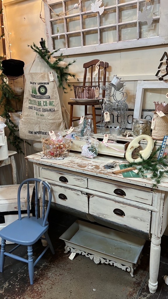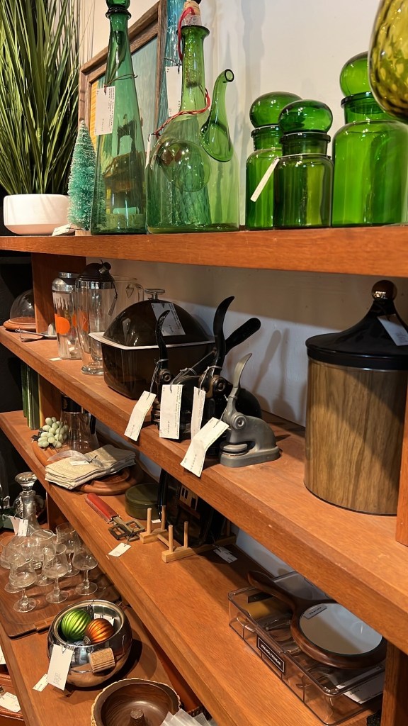 Love this collection! The vintage glass pairs so nicely with the holiday decor and old office supplies.