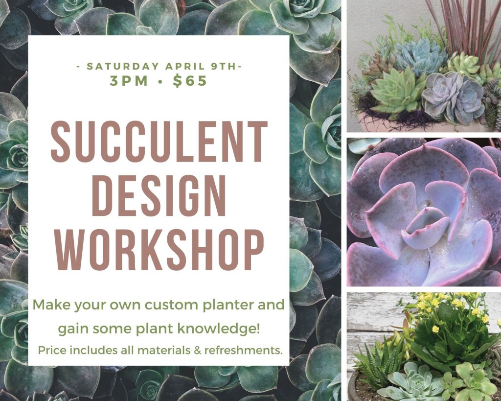 Our next succulent workshop has been scheduled! Join us on Saturday, April 9th for some plants, design time, crafting and refreshments!