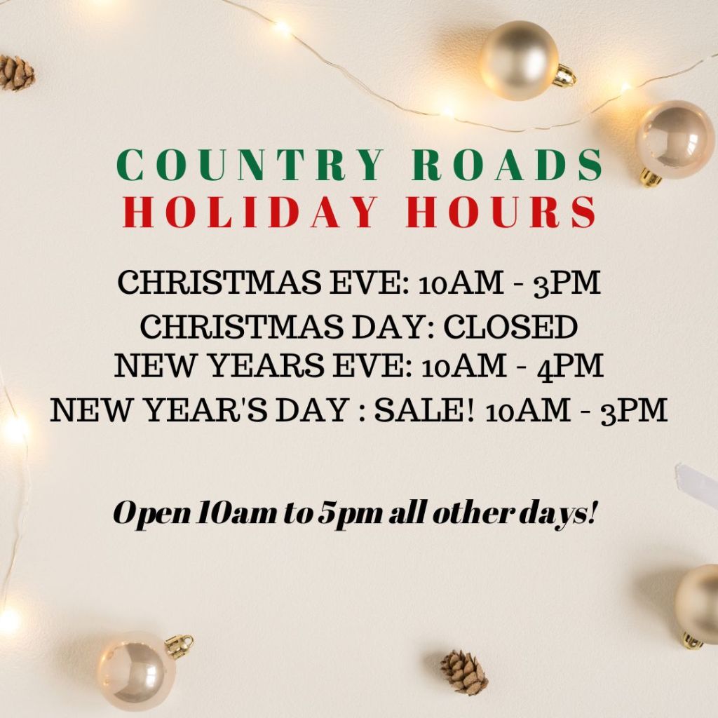 We are open from 10am to 5pm daily all holiday season, except for the dates noted below!