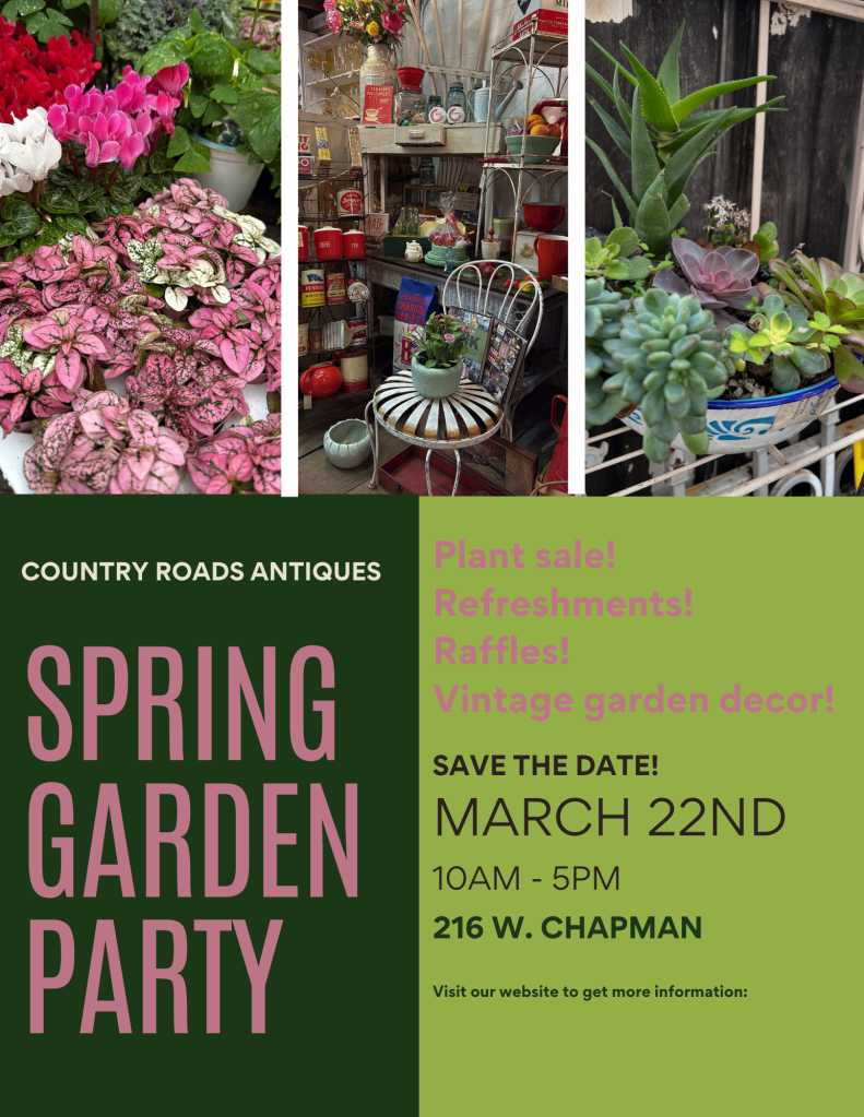 We’ll have all sorts of great vintage garden decor, refreshments, raffles, a free mini plant for the first 50 or so guests, and a plant sale, too!